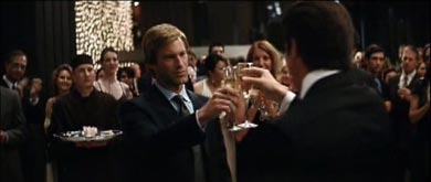 Nach seiner kurzen Ansprache auf Harvey Dent, stößt Bruce Wayne mit ihm an. Diese Szene war noch im ‚Wizard‘-Trailer zu sehen. Im fertigen Film geht es direkt nach der Ansprache mit der Szene auf der Dachterasse weiter.